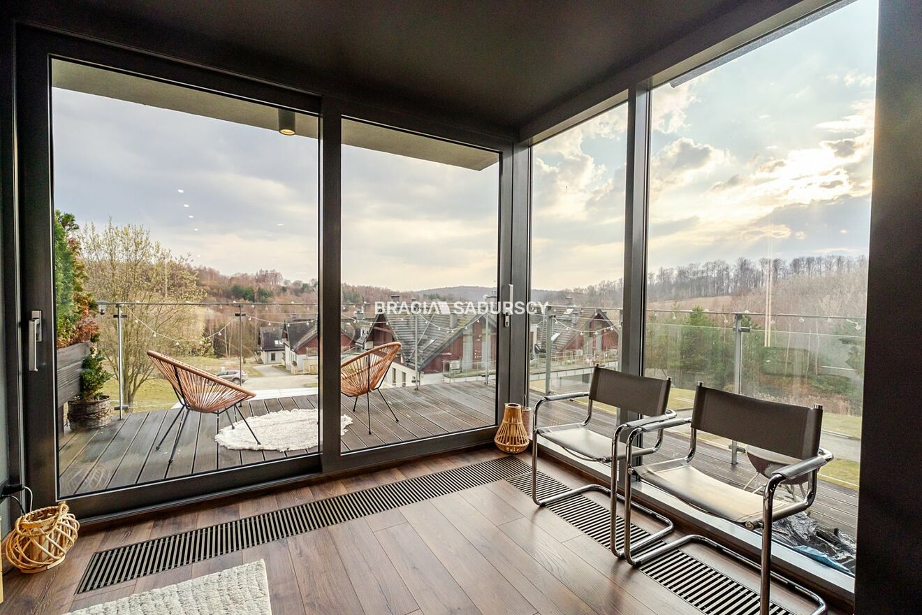 duży taras z ekspozycją południową i panoramicznym widokiem na tereny zielone, pole golfowe oraz lasy